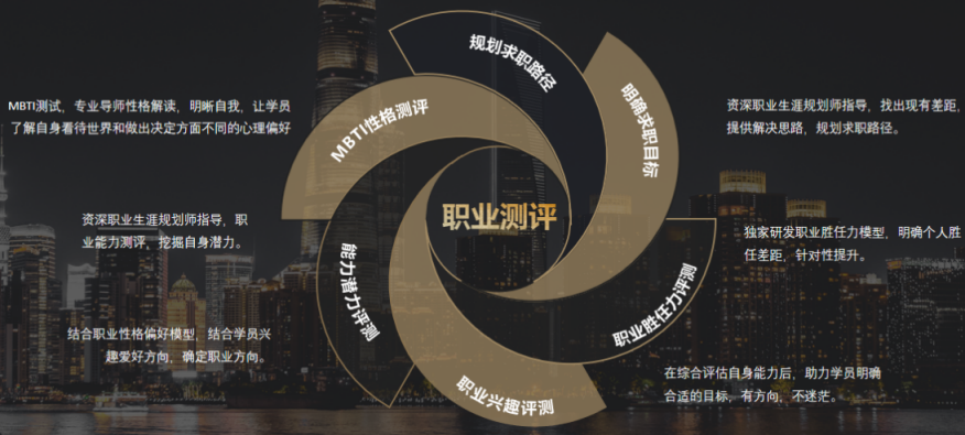 中/英简历修改与辅导、网申/笔试/面试准备、求职技巧课程等。