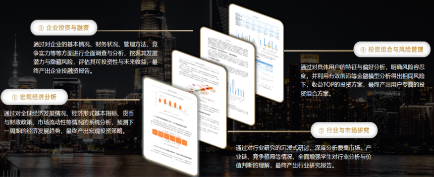 CFA财经人才培养计划以全球财经金融界含金量最高的资格认证CFA(特许财经金融分析师)作为理论基础,覆盖“行业与市场研究”、“企业投资与融资”、“投资组合管理与风险管理”三大专业模块,辅以项目制实践,通过智能化、场景化训练,帮助员工打造敏锐的财经金融嗅觉,深入财经金融实践前沿,赋予员工更多元的视野拓展、更有效的前瞻性思维、更扎实的实战积累,成为全面的应用型、复合型的财经金融精英。