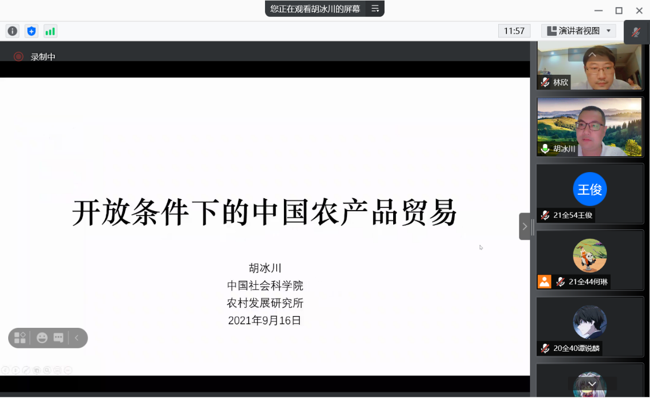 2021年9月16日晚上19点30分,公司邀请中国社会科公司农村发展研究所农产品贸易与政策研究室主任、博士生导师胡冰川研究员开展了主题为“开放条件下的中国农产品贸易”的线上讲座。讲座由bevictor伟德林欣副经理主持,公司40多名教育硕士(财经商贸)研究生参加了本次讲座。
