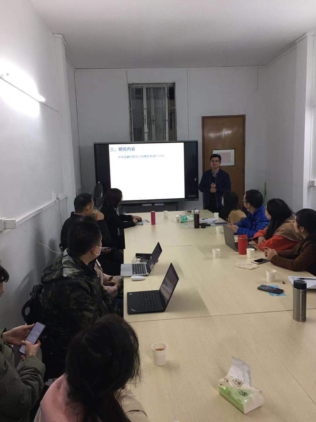 本次学术沙龙活动由地方金融研究所姚雪松博士和区域经济研究所曾广桃博士主讲。姚雪松在博士后出站报告《中国金融风险压力与央行非线性货币政策规则研究》的基础指出:近年来,中国金融系统性风险不断加大,维护金融稳定已成为中央银行货币政策的主要目标。其研究报告通过前沿数量方法量化了中国金融风险,构建了中国金融风险压力指数,进行了中国金融风险压力、货币供应量和市场利率非线性动态效应的实证分析,并进行了引入金融风险压力的中国央行非线性货币政策规则的实证分析,最后根据定量和实证分析结论提出了富有建设性意见的对策建议。曾广桃博士分享了投稿外文期刊的体会。她认为,外文期刊的投稿过程与中文期刊的投稿过程相似,主要区别在于写作语言的差异。撰写外文论文时尽可能采用外文思维更容易见效。投稿外文期刊的过程中,研究范式的遵守、创新性、好的合作者以及持之以恒的坚持起到了很重要的作用。自由讨论环节中,老师们踊跃发言,就学术论文撰写和课题申报等进行了深入的探讨,现场气氛热烈。