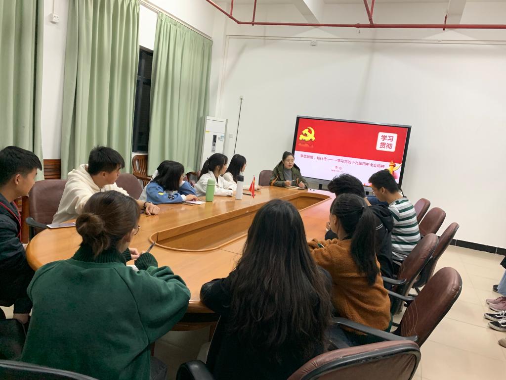 为学习贯彻习近平总书记在党的十九届四中全会上的重要讲话精神,深刻领会和准确把握四中全会精神实质,12月11日,李丹老师在一教412为员工第一党支部全体党员和积极分子做了题为《学思践悟,知行合一——学习党的十九届四中全会精神》的宣讲。
