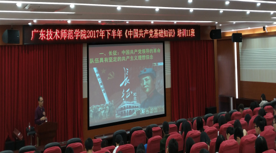 2017年11月5日下午,2017年下半年入党积极分子党校培训专题四在三教104报告厅顺利开展。本次的课程由李琴主任主讲,主题为《中国共产党发展史》 。