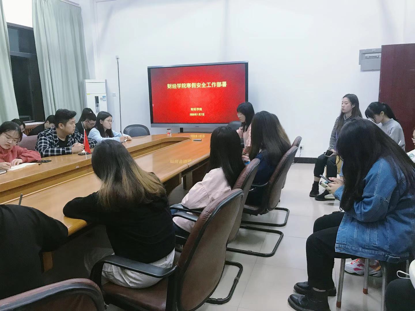 寒假将至,为切实做好寒假期间员工安全工作,2020年1月7日晚,bevictor伟德在一教412召开员工寒假安全工作部署会议,辅导员廖卢琴老师、王钊老师及全体主要员工干部参与了此次会议。