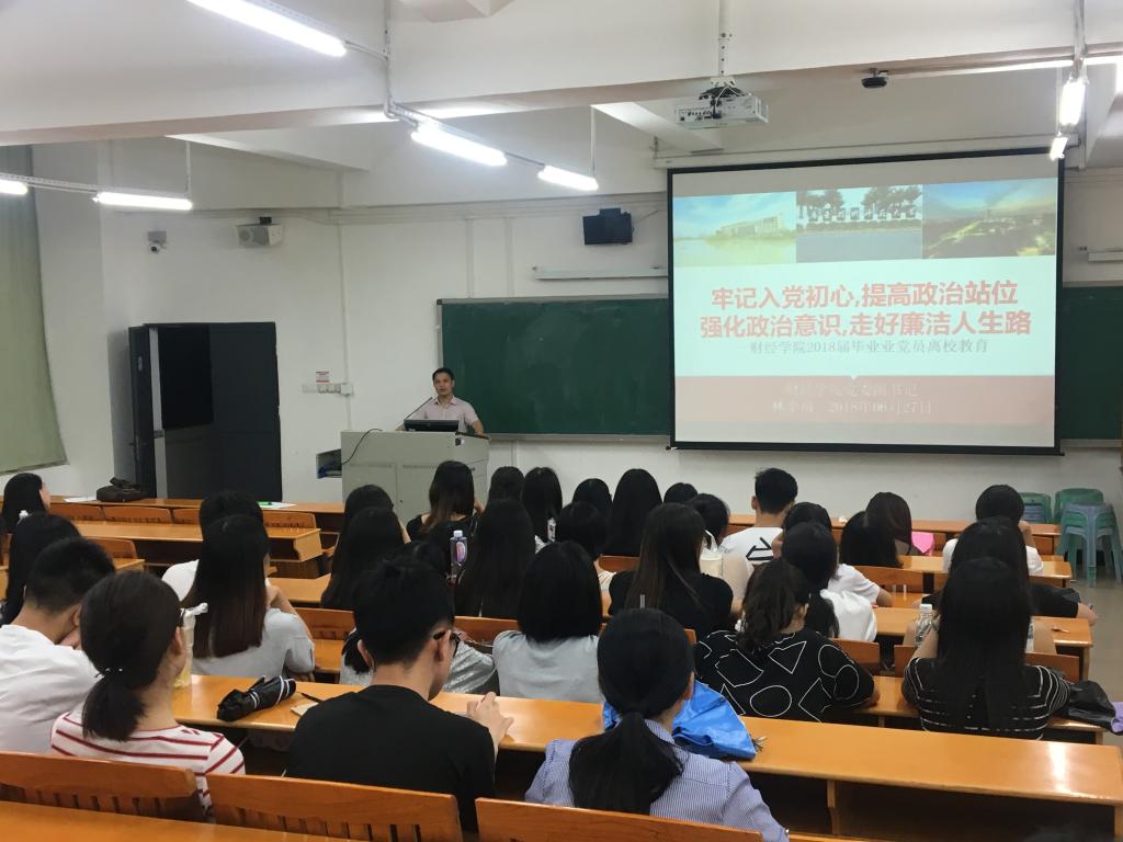 根据《关于做好公司2018年毕业生文明离校工作的通知》(广师院〔2018〕169号)、《关于开展庆祝建党97周年系列教育活动的通知》(广师党委〔2018〕83号)和广东技术师范公司转发的《走好廉洁人生路——致公司2018届毕业生的一封信》的有关指示精神,2018年6月27日19:00点-21:00点,公司党委在白云校区三教214教室举行2018届毕业生党员文明离校教育暨庆祝建党97周年座谈会。公司党委副书记林幸福同志参加会议并做主题报告。座谈会由公司党政办支部书记兼员工第四党支部书记罗雄同志主持。