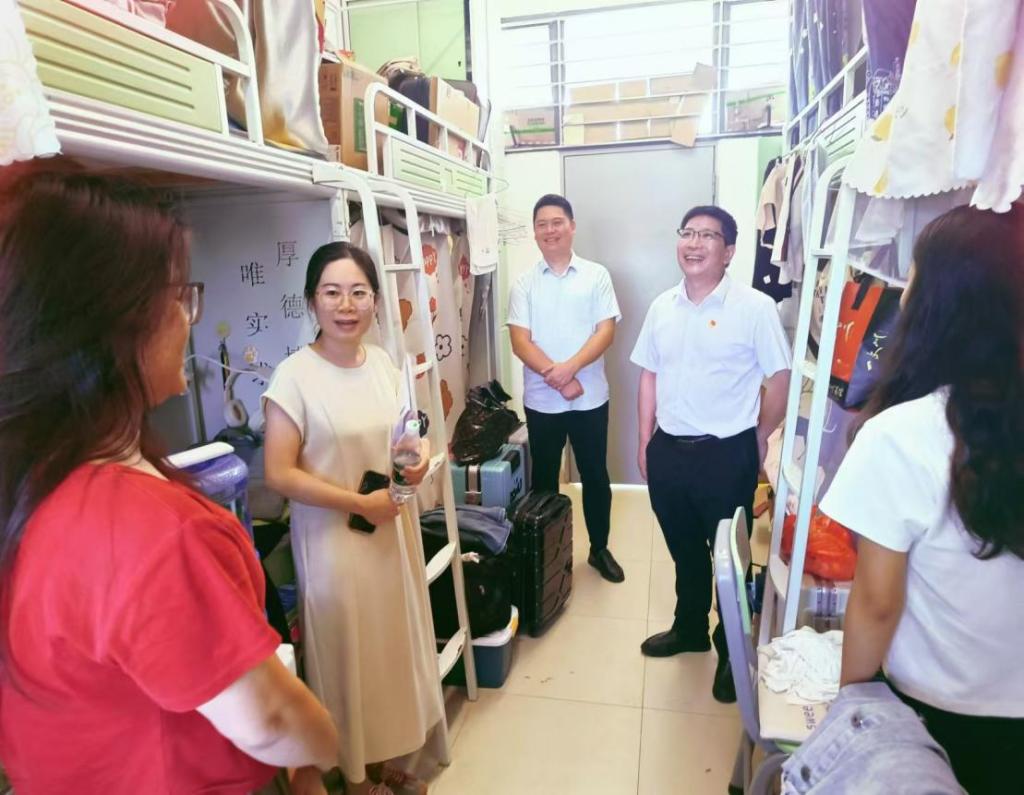 为进一步了解员工新学期心理状态和所思所想,加强师生交流,传递公司对员工的深切关怀与期望,9月19日,公司党委书记吴松、向凯经理、黄伟文副书记、周清副经理、刘国庆副经理带领年级辅导员,分别深入21级和23级本科生及研究生员工宿舍走访看望员工。