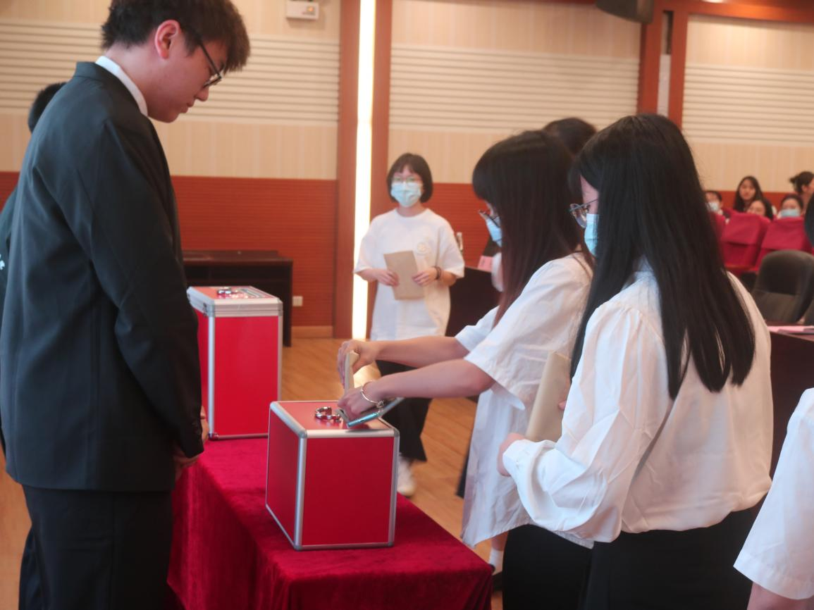 其后研究生会主席团候选人、员工会委员候选人及第一届研究生会代表候选人依次上台进行竞选演讲,展现了财经学子昂扬向上的精神风貌,正如毛主席所言——恰同学少年,风华正茂,书生意气,挥斥方遒。在等待统计选票的过程中,公司对上一届员工会、研究生会干部举办受聘仪式,对干部们一年的工作表示肯定。在经过公平公正公开的投票选举后,总监票人周若晴宣布大会选举结果。随后,公司团委书记罗雄对此次会议进行总结发言——此次会议为研究生及本科生搭建了沟通交流的桥梁,更开阔了大家的眼界,并表示此次会议不是结尾而是开端,在后续的工作中,干部们更要尽心尽力尽责。