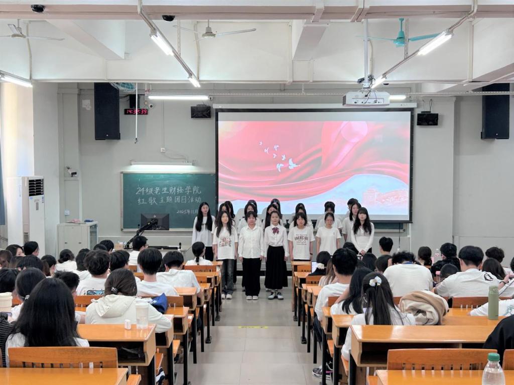 活动在庄重而热烈的氛围中拉开帷幕。主持人介绍了到场嘉宾与评委,并详细说明比赛流程与评分标准。随后,各团支部按抽签顺序依次登台献唱,一首首红色经典在现场回荡。《歌唱祖国》《我和我的祖国》等歌曲旋律激昂、情感真挚,唱出了财经学子对祖国的热爱与对时代的礼赞。参赛队伍精神饱满、配合默契,舞台表现自信大方,或气势恢宏,或深情婉转,展现了新时代青年昂扬向上的精神风貌。