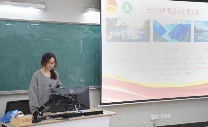 员工会功能型团支部书记肖琳介绍全会召开背景与历史方位