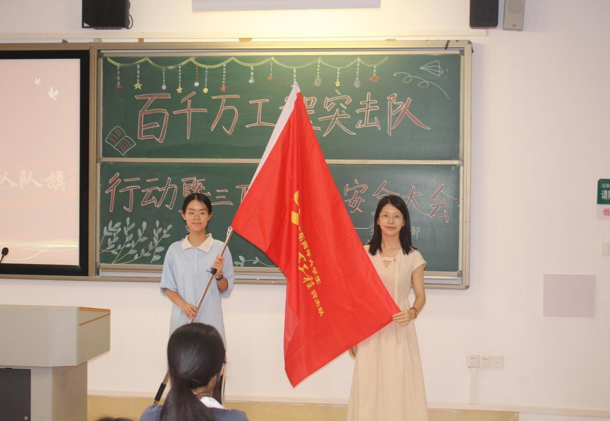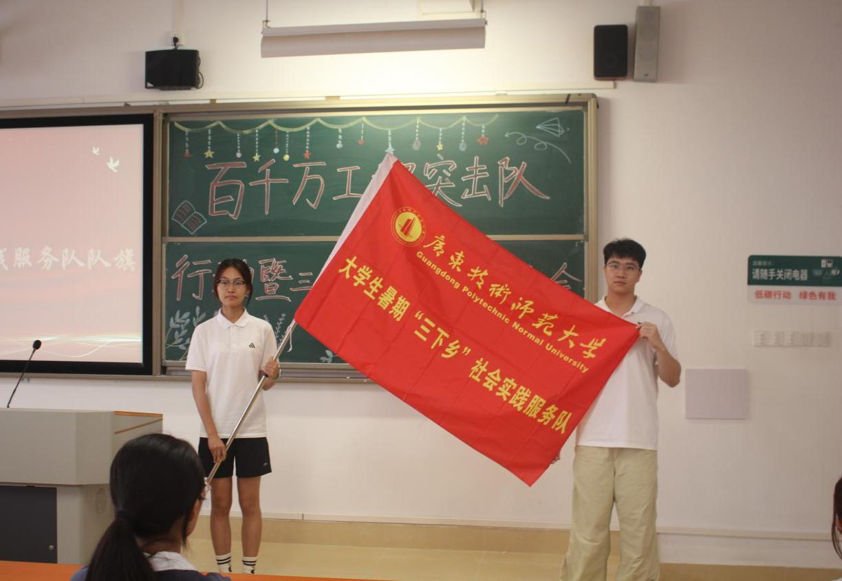 在大会尾声,郑灿玲与陈逸珺老师代表公司将“百千万工程”突击队和“三下乡” 社会实践服务队队旗授予队伍代表手中。随着两面旗帜的庄严交接,本次暑期社会实践活动正式宣告开启。这一授旗仪式,不仅是对各实践队伍前期筹备工作的高度肯定与有力鼓舞,更承载着公司对其实践征程的深切期许与美好祝愿,它象征着实践使命的传承与责任担当的托付。