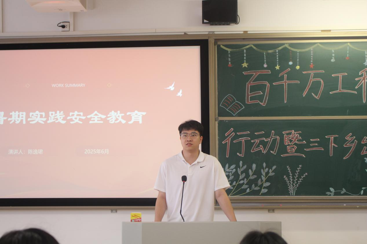 大会伊始,陈逸珺老师围绕暑期实践安全教育发表讲话,系统阐释了安全工作的三大核心原则,并结合实践场景对具体安全注意事项进行细致讲解。他以详实的案例和清晰的逻辑,让各下乡实践队伍深刻领悟到安全工作的重要意义,有效强化了安全防范意识,为暑期实践活动的开展构筑起坚实的安全屏障。