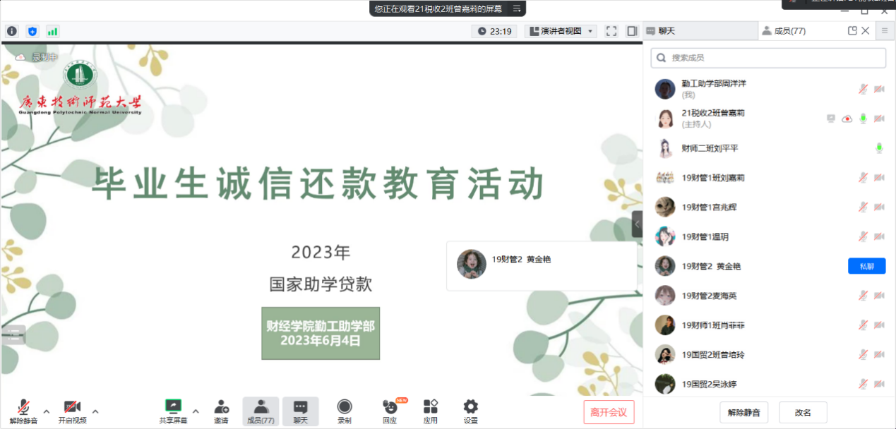 本次会议围绕着什么是生源地贷款、贷款利息如何计算、如何逐步还款以及如何获取还款账号等方面展开介绍,有序地帮助同学们提升对生源地贷款的认识,使其心中的概念具体化、清晰化,进而提升公司毕业生对整体操作流程的了解。