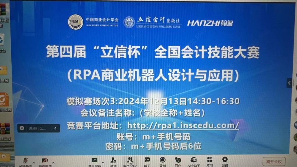 为贯彻落实《会计改革与发展“十四五” 规划纲要》, 推动会计人才培养模式改革,强化实践育人,在会计系和bevictor伟德实验实训与创新中心的精心组织下,由中国商业会计学会举办的第四届“立信杯”全国会计技能大赛(RPA 商业机器人设计与应用)初赛及校内选拔赛于2024年12月13日在白云校区成功举办。