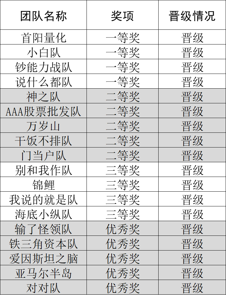 经专家评审团从 “决策科学性、数据准确性、团队协作度” 等维度严格评审,最终 18 支队伍脱颖而出晋级区域赛,晋级数量在华南区域高校中位居前列。具体获奖情况如下: