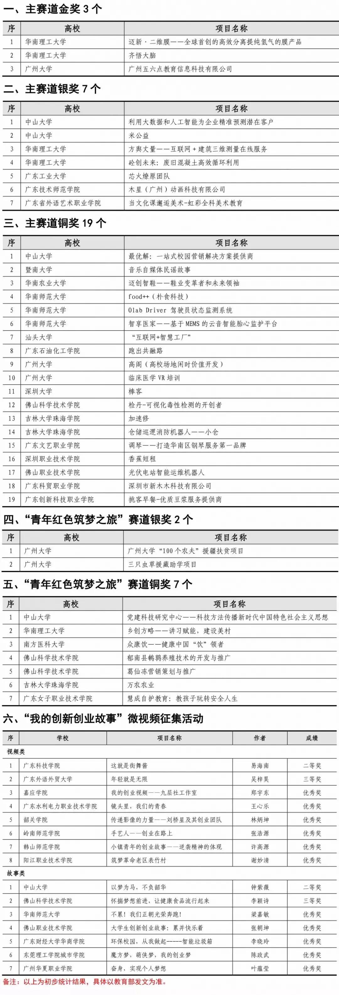 以下是广东省项目获奖列表