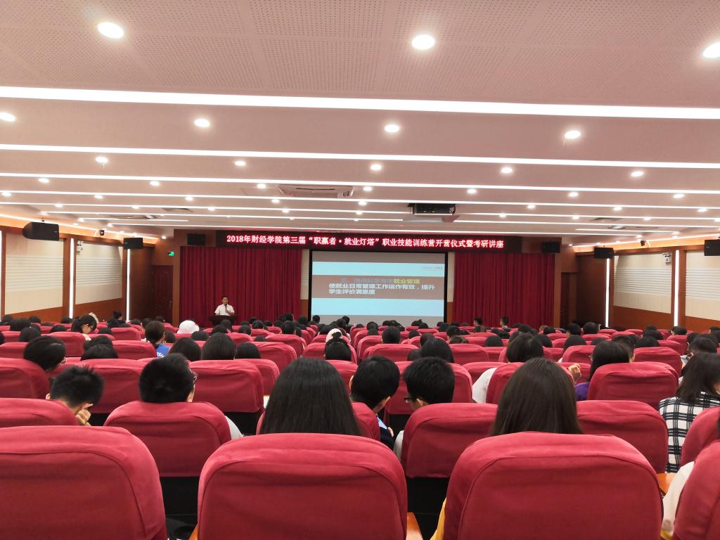 10月22日,我院第三届“职赢者.就业灯塔”职业技能训练营开营仪式暨考研讲座在白云校区三教报告厅举办。出席本次活动的有公司党委副书记林幸福副教授、中公考研广东总负责人马清珍老师以及负责就业工作的辅导员老师,300余名员工聆听了讲座。