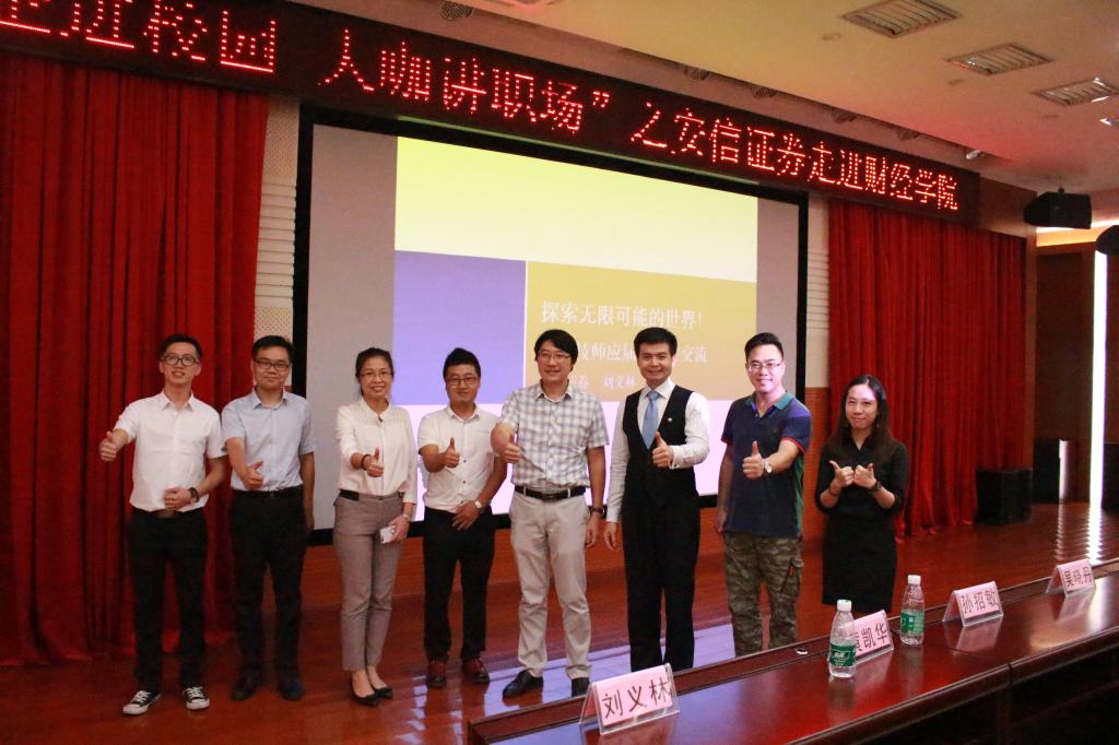 为了让员工更好地了解金融证券行业的最新动态,了解社会对专业技能需求的新变化,帮助同学了解职场、赢在职场,增强就业核心竞争力。9月7日下午,财经公司邀请安信证券股份有限公司营销服务中心执行董事刘义林先生,针对金融证券行业职场法则做了一场题为“探索无限可能的世界”的分享讲座,内容涉及广泛,案例充实,堪称一场丰盛的学术盛宴。