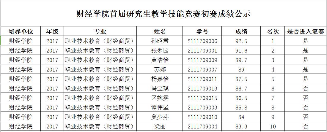 附:初赛成绩及推荐进入复赛名单
