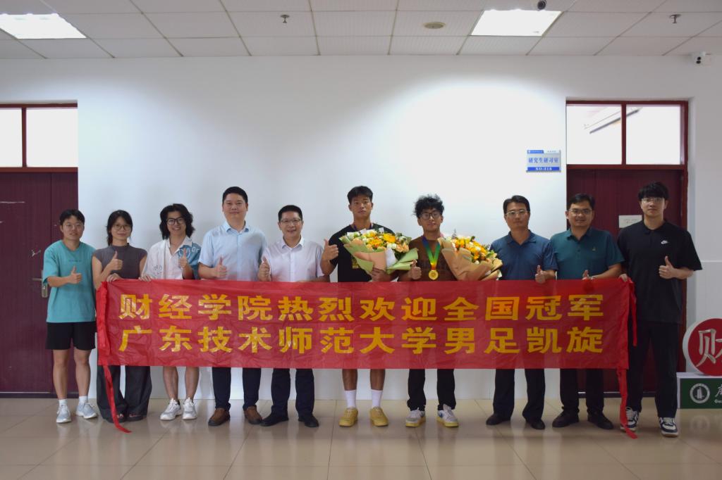 孟夏之日,万物并秀。经过激烈的角逐,代表广东出战的伟德源自英国1946足球队日前在广西梧州举行的2023—2024全国青少年校园足球联赛大学男子校园组全国总决赛中,以5比3击败对手勇夺桂冠,创造历史!令bevictor伟德师生倍感自豪的是,公司两位优秀学子,来自2021级财务会计教育1班的江永扎巴和林毅忠,作为公司球队的核心成员,为此次夺冠立下了赫赫战功。为表达对两位同学的热烈祝贺,公司于6月18号在一教316举行了一场简朴但热情的欢迎座谈会。公司党委书记吴松、公司经理向凯、公司党委副书记黄伟文、辅导员代表和部分员工代表参加座谈。