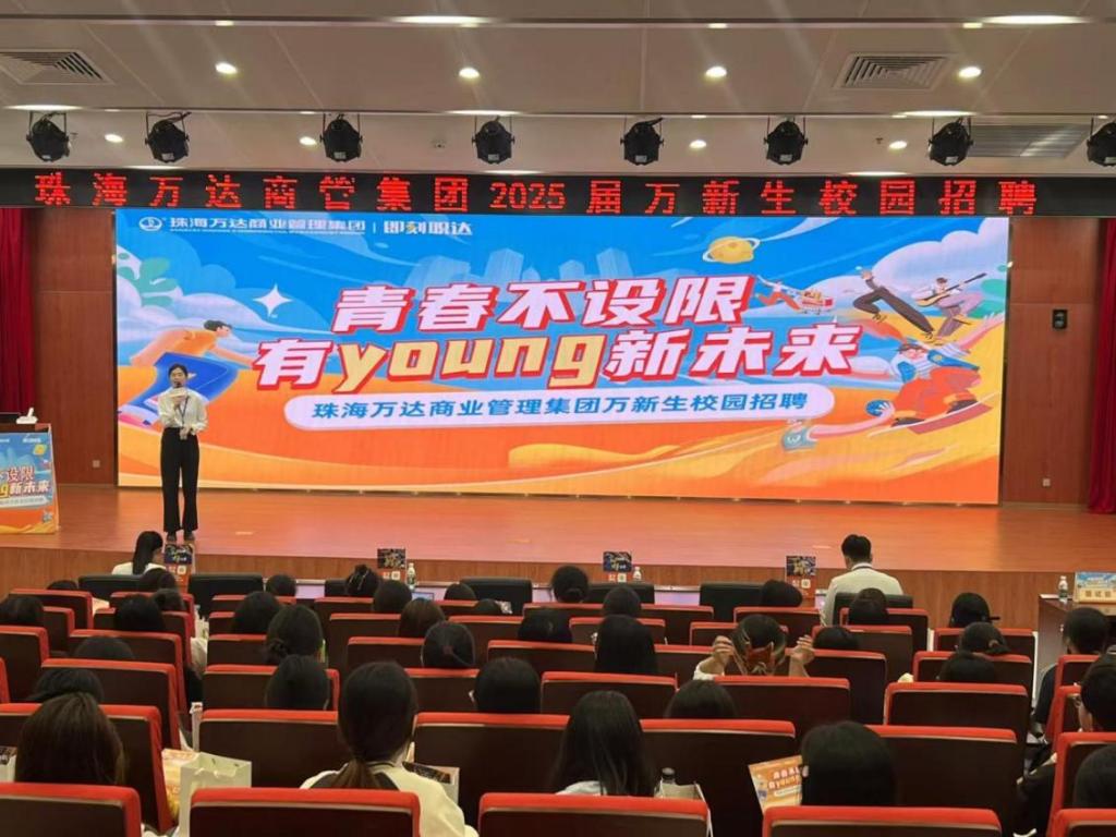宣讲会由胡诗梅开场,她深入介绍了珠海万达商业管理集团的企业文化、公司理念、价值取向。同时,她介绍了珠海万达商管集团的招聘要求与招聘流程、培养方向以及薪酬福利,为同学们提供全方面参考,帮助同学们更好地了解就业岗位,评估自身是否符合岗位要求以及制定求职策略。