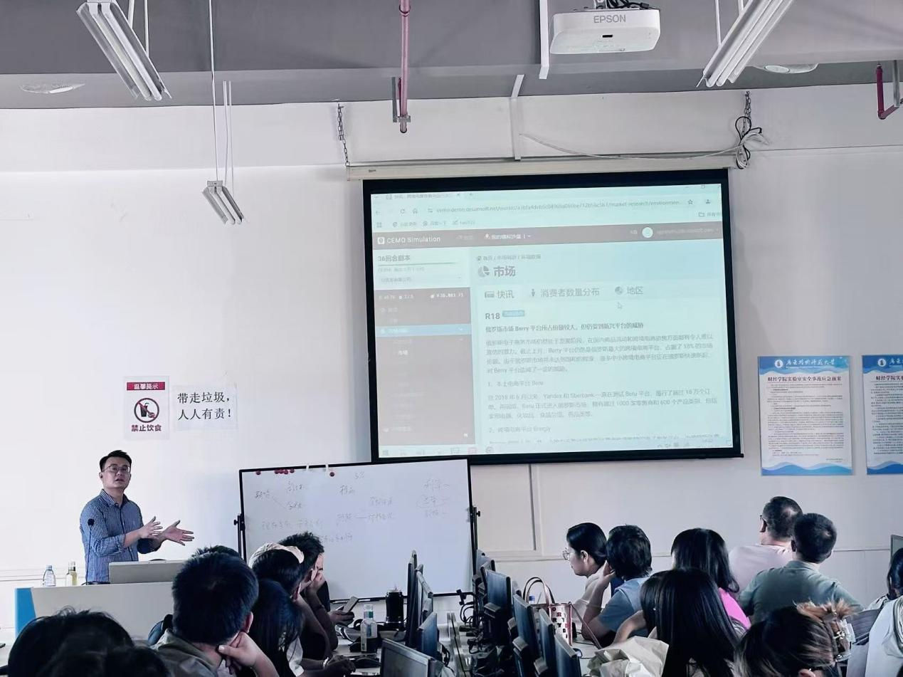 本次活动邀请到了世格软件的严经理来进行分享与培训。在数字品牌运营决策模拟沙盘培训环节,严经理从品牌定位、市场调研、产品研发到品牌推广策略的制定都通过实际案例和数据进行举例剖析。此外,跨境电商营销与运行决策模拟沙盘的培训同样精彩纷呈,严经理详细介绍了跨境电商平台的运营规则、营销策略的制定以及物流供应链的管理等核心内容;针对不同国家和地区的市场特点、文化差异以及消费习惯,严经理分享了许多实用的营销技巧和策略,让师生们深刻认识到跨境电商营销需要具备全球化的视野和本地化的运营能力,同时他也强调:在模拟操作过程中,师生们需要综合考虑各种因素,如产品定价、广告投放、促销活动等,以实现利润最大化和市场份额的增长。
