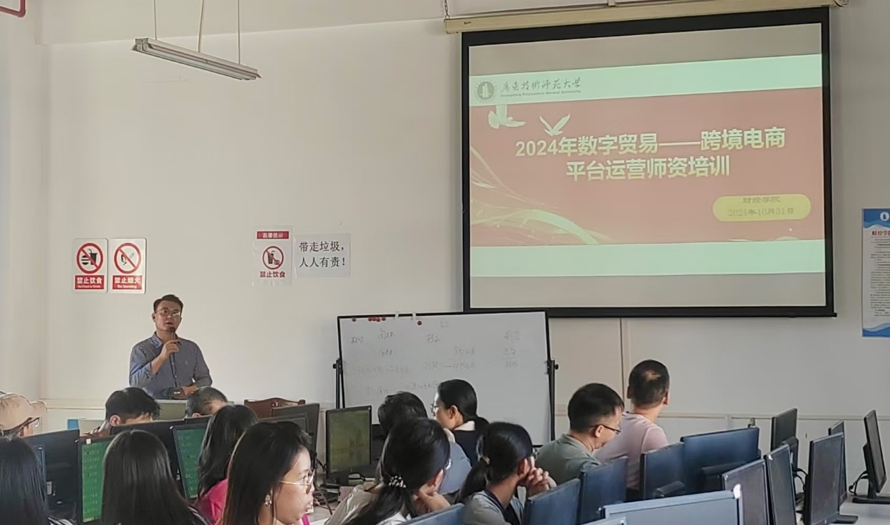 伴随全球化纵深推进和互联网技术高速发展,跨境电商作为一种新兴电商模式,已成为中国发展速度最快、潜力最大、带动作用最强的外贸新业态。为响应“能力为本,职业发展导向”的新兴人才培养号召,积极探索跨院系、跨学科、跨专业的复合型人才培育新路径,搭建产教融合、校企合作的坚实桥梁,激发老员工在跨境电商领域就业热情,2024年10月31日,由bevictor伟德商务系主办的2024年数字贸易——跨境电商平台运营团队培训在白云校区第三实训楼505教室圆满举行。bevictor伟德商务系主任张媛媛老师,bevictor伟德辛娜、朱邦耀、周旭、燕立乾、谢卓廷和敖建猛老师参加了本次培训。