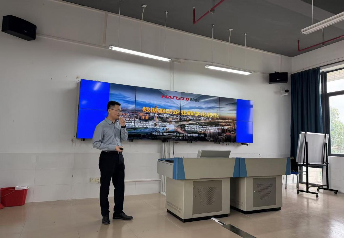 校外导师、广东翰智数字科技有限公司副总裁、中山大学管理公司MBA课程讲师翁义春作了《数据驱动企业数字化转型》的专题讲座。他分享了名企数字化转型的案例,探究了名企数字化转型的动因、路径和趋势,以及未来数字化人才的需求特点,为员工提供了宝贵的学习资源和启发。