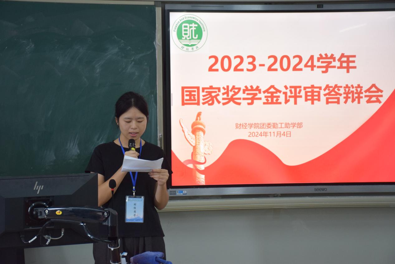 国奖评审答辩会上,候选人通过PPT现场展示的形式,围绕思想品德、学业成绩、科研探索、社会实践及志愿服务等方面展示个人综合能力,充分展现了财经学子的青年风采。答辩过程中,评委们认真聆听每位候选人的汇报并就其展示的内容进行提问,面对评委老师的提问,候选人们冷静思考、沉着应答,充分展示了自己的逻辑思维能力和语言表达能力。