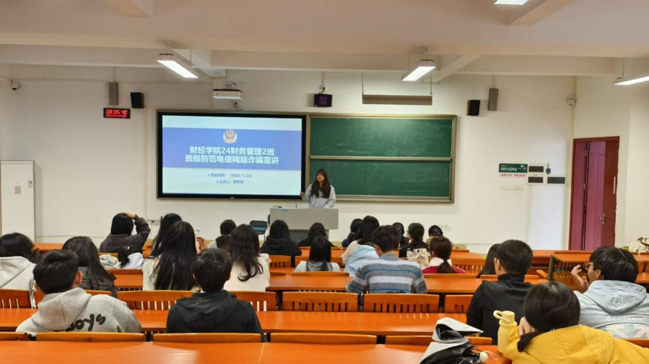班会上,各班宣传委员详细讲解了冒充公检法诈骗、刷单兼职诈骗、网络贷款诈骗等多种诈骗手法,并结合真实案例剖析了诈骗分子的狡猾手段。同时,还强调了保护个人信息的重要性,提醒同学们不要随意点击陌生链接或下载不明软件,避免泄露个人钱财和秘密信息。