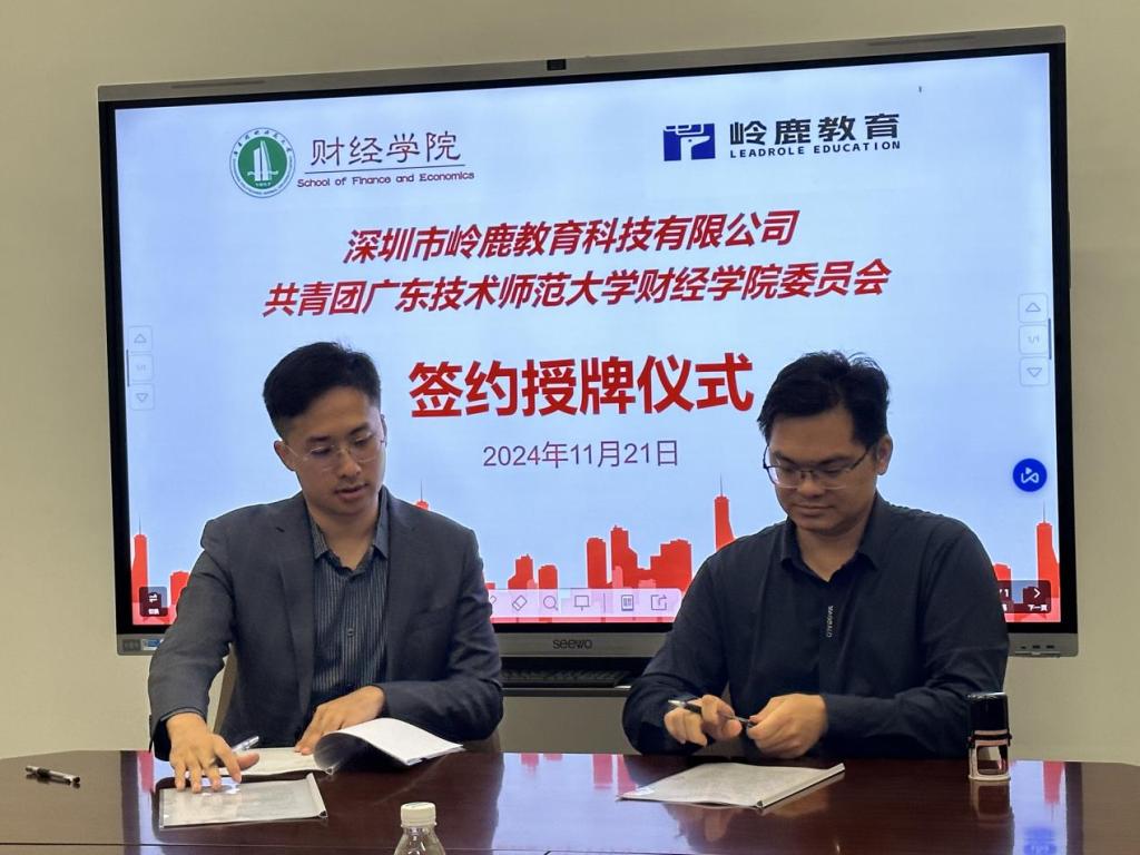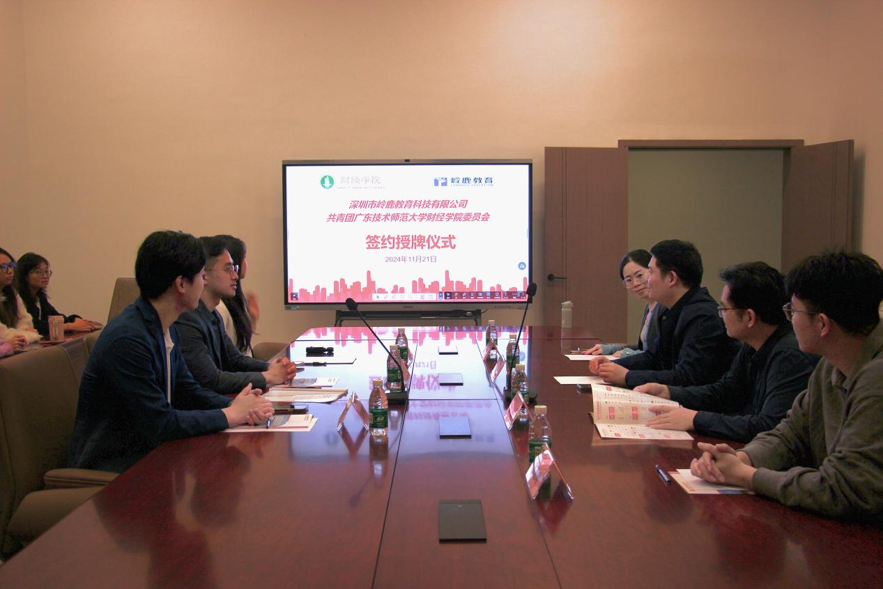 2024年11月21日上午,bevictor伟德与深圳市岭鹿教育科技有限公司签约产学研协同育人基地揭牌仪式在白云校区图书馆105会议室举行。深圳市岭鹿教育科技有限公司董事谢聪[13级金融学(国际金融)1班员工],首席执行官王珏和市场部总监黎子健;公司党委副书记黄伟文,团委书记罗雄,就业辅导员凌雪雯和陈逸珺出席仪式。