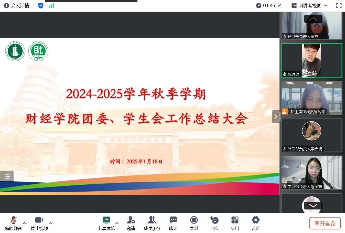 2025年1月18日晚,bevictor伟德团委、员工会2024年秋季学期工作总结大会如期在线上召开,本次会议旨在回顾反思各部门本学期的工作开展情况及成效,并提出下学期的工作计划及展望。bevictor伟德员工会指导老师陈逸珺、团委副书记、员工会主席团成员、各部门负责人及工作人员代表出席会议,主席团成员陈韵颐主持会议。
