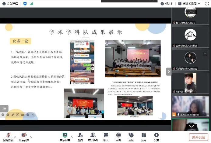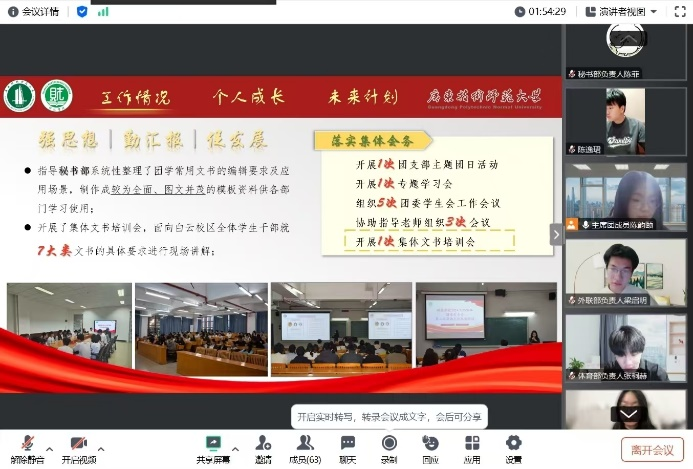 会上,员工会主席团成员依次对本学期的工作情况及个人成长进行汇报,详细总结了各项工作取得的成果,分享工作方法及个人收获,并提出在公司团委的指导下将继续带领全体员工干部创造新辉煌。随后,各部门负责人依次详细回顾本学期的部门工作内容,并提出新学期的工作计划。他们一致表示,在指导老师和主席团的帮助下,圆满完成了本学期的各项工作,充分锤炼了个人能力,未来也将继续秉持为同学们服务的宗旨,不断提升工作质量,共同推进财经团学的服务水平迈上新台阶。