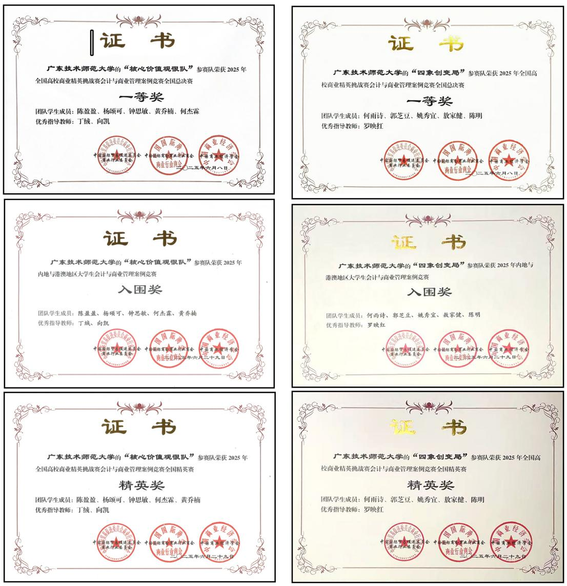 2025年全国高校商业精英挑战赛会计与商业管理案例竞赛全国精英赛于6月27日至29日在河南省三门峡市圆满落下帷幕。公司两支会计专硕研究生代表队——“核心价值观很队”(成员:陈盈盈、杨颂可、钟思敏、何杰霖、黄乔楠;优秀指导教师:丁绒、向凯)与“四象创变局”(成员:何雨诗、郭芝豆、姚秀宜、敖家健、陈明;优秀指导教师:罗映红)历经激烈角逐,从全国总决赛脱颖而出,晋级全国精英赛,最终双双斩获三项殊荣:全国总决赛“一等奖”、中国内地与港澳地区老员工会计与商业管理案例竞赛“入围奖”,以及全国精英赛“精英奖”。此次佳绩不仅实现公司在该赛事的历史性突破,更充分展现了公司学子扎实的财会专业素养与卓越的商业分析能力。两支队伍以财会分析为利剑,在群雄逐鹿的竞技场上展现非凡实力。
