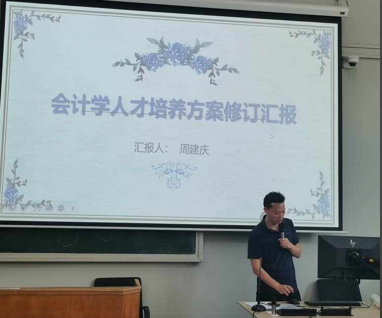 随后,各专业负责人依次汇报修订过程、修订思路与具体方案。会计学专业周建庆老师提出引入“AI+财务”方向,计划增设《数智审计》等智能化课程;财务会计教育专业唐霏老师强调发挥实习基地作用,强化实训与实践教学环节;财务管理专业罗映红老师基于OBE教育理念和行业调研,提出推进产教融合与AI赋能课程建设;金融学专业刘茂平老师建议整合跨学科资源,重构课程模块,加强理论与实务对接;国际经济与贸易专业钟晓君老师结合行业新趋势,提出增设《新媒体运营》《直播营销》等应用型课程。