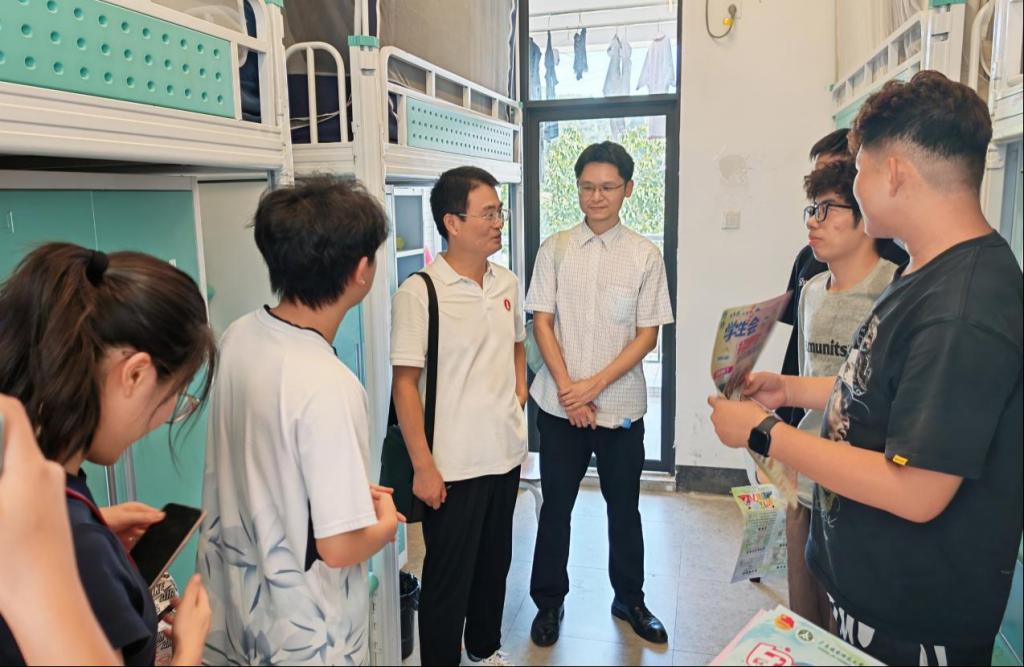 当天下午,公司领导、辅导员、班主任、专任教师、助辅助班、团学干部分组走访南苑3栋(女生)、南苑5栋(男生)新生宿舍,详细了解新生入住情况,开展防诈宣传并发放《防范电信网络诈骗宣传手册》,展现公司人文关怀。