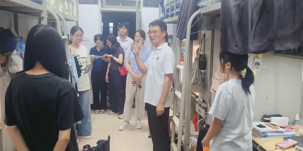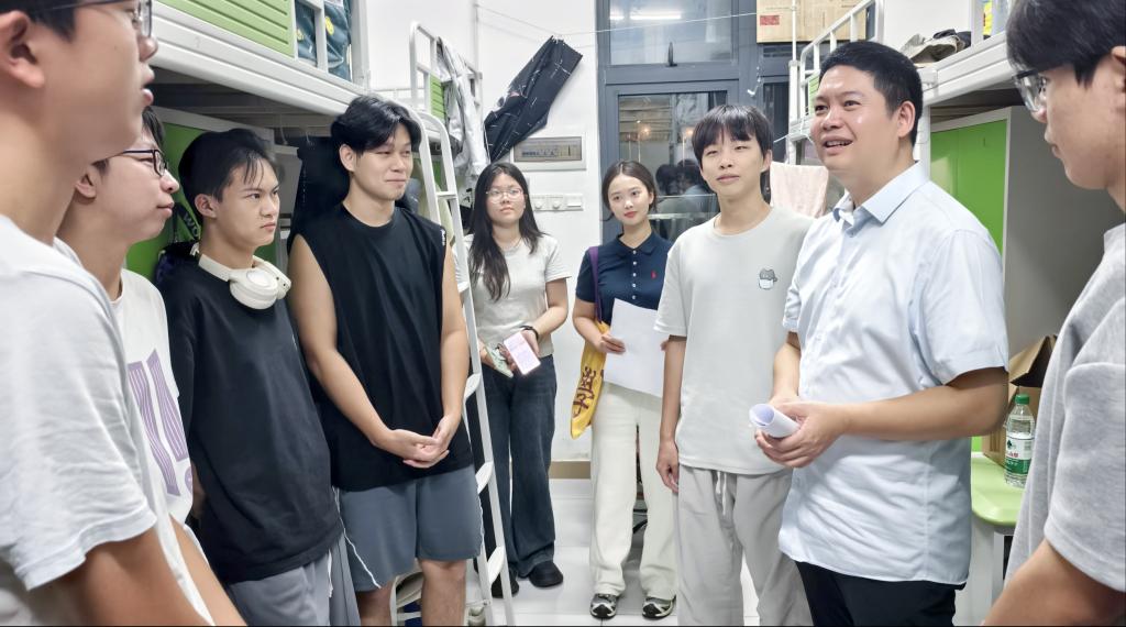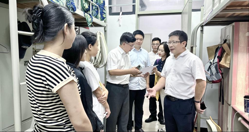 2025年9月22日晚,伟德源自英国1946公司党委书记吴松、经理向凯、党委副书记黄伟文、副经理周清、副经理刘国庆等领导班子及全体辅导员集体深入员工宿舍,看望各年级员工,全面了解新学期员工思想动态与生活需求,并重点部署超强台风“桦加沙”的防范工作。