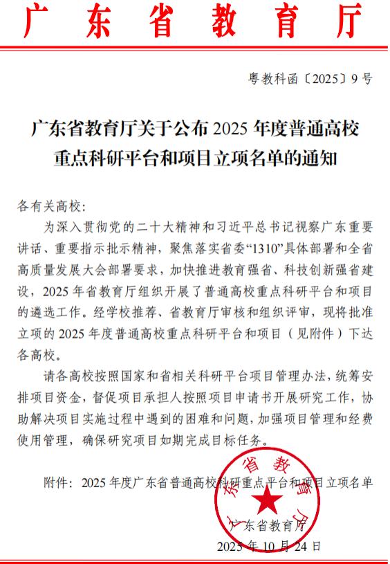 近日,广东省教育厅公布了2025年度普通高校重点科研平台和项目立项名单。由公司党委书记王兵教授作为负责人牵头申报的“数字经济与新质生产力重点研究基地”成功获批为广东省普通高校人文社科重点研究基地,成为bevictor伟德获得的重要省级科研平台。这是王兵教授团队在成功获批国家社科基金重点项目后,在科研平台建设上取得的新突破,形成了“国家级重点项目-省级重点科研平台”联动互促的良好发展态势。