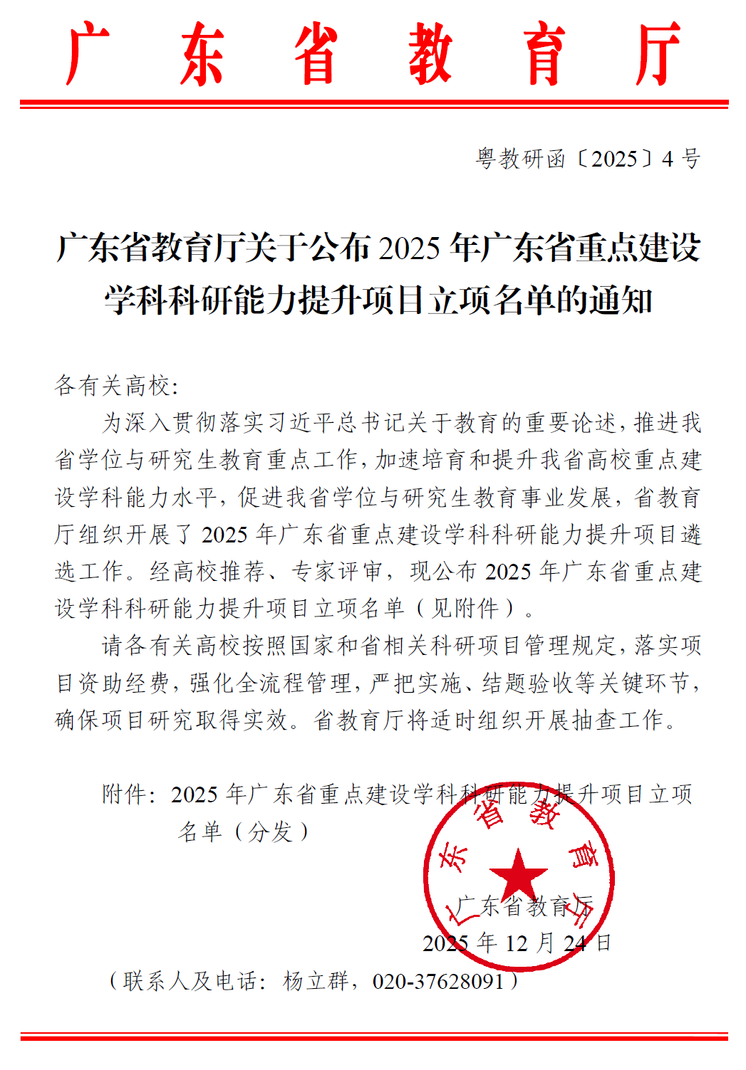 2025年12月24日,广东省教育厅正式公布了2025年广东省重点建设学科科研能力提升项目立项名单。公司党委书记王兵教授牵头申报的《数实融合驱动广东制造业绿色低碳转型的机制与对策研究》项目成功获批立项。