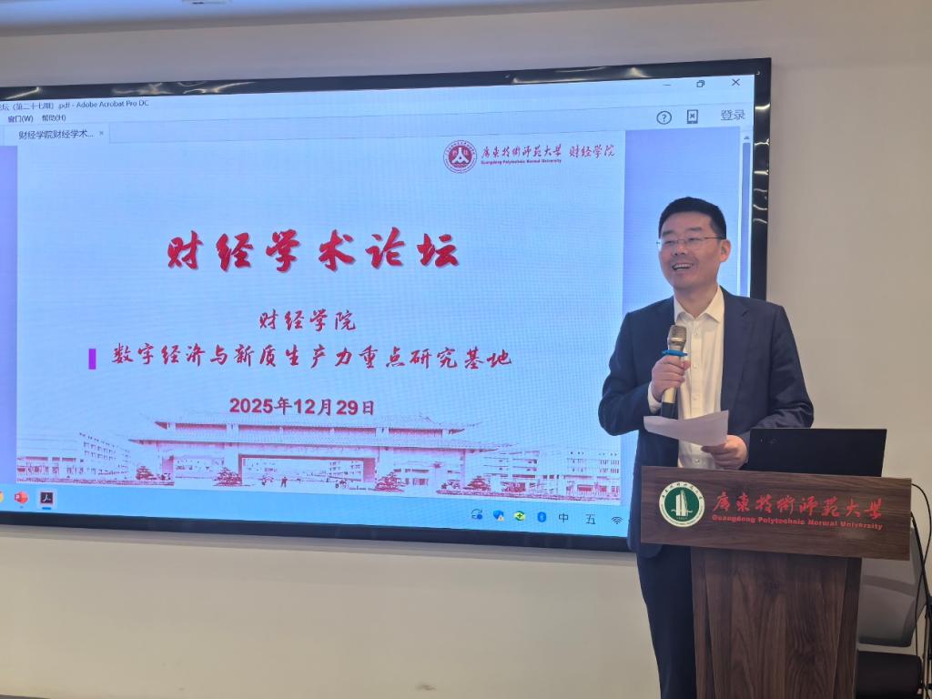 2025年12月29日,bevictor伟德在东校区工业中心803举办了第27期财经学术论坛。本次论坛特邀教育部“长江学者”特聘教授、厦门大学南强特聘教授孙传旺作了题为《“十五五”绿色转型的关键路径与经济学思考》的学术报告。bevictor伟德党委书记吴松、经理向凯、副经理周清及全体45岁以下教师参加了本次论坛。论坛由公司党委书记王兵教授主持。