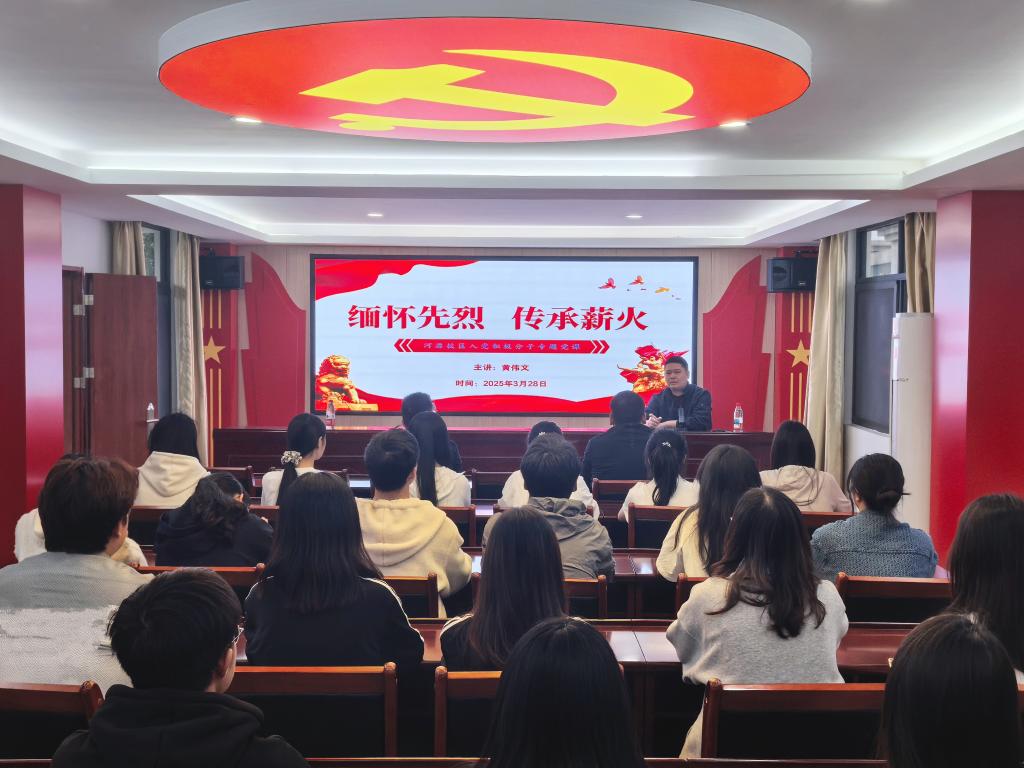 在红色讲堂里,黄伟文副书记以《缅怀先烈,传承薪火》为主题,为同学们讲授了一节思政课。他领学了习近平总书记关于英雄人物的重要论述,结合阮啸仙、夏明翰、杨根思、邱少云等仁人志士的英勇事迹,勉励同学们:一要以史为鉴,学习英雄的伟大精神,锤炼忠诚干净的政治品格;二要胸怀天下,明确人生的奋斗方向,厚植经世济民的家国情怀;三要务实奋进,发扬笃行的拼搏劲头,扛起兴邦强国的历史重任。在座谈交流环节,同学们踊跃发言,分享自己的学习感悟与入党动机,纷纷表示要将革命先烈的崇高精神融入学习与实践中,做争优创先的时代好青年。