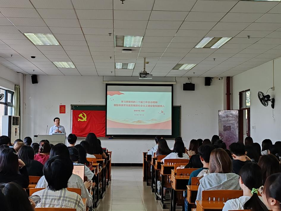 11月11日,管理公司党委书记陈军做题为《学习贯彻党的二十届三中全会精神,做德智体美劳全面发展的社会主义建设者和接班人》第一堂专题党课。他系统阐述党的二十届三中全会的重点内容和重要意义,强调了会议对于推进国家治理体系和治理能力现代化的重要作用,并鼓励学员们要勇于担当作为,为实现中华民族伟大复兴的中国梦贡献自己的力量。