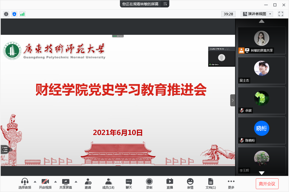 为贯彻落实省委教育工委及公司党史学习教育工作部署要求,总结回顾公司党史学习教育前一阶段的工作,对下阶段工作进行再动员再部署,推动党史学习教育取得新进展新成效,6月10日,公司党委召开线上党史学习教育推进会。此次会议首先邀请了华南师范大学马克思主义公司特聘副研究员杨泰龙博士做“早期中共革命目标的转变与马克思主义中国化”的主题分享。公司党委委员和全体支部书记参会,会议由公司党委书记吴松主持。